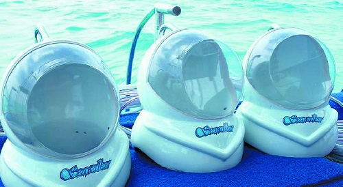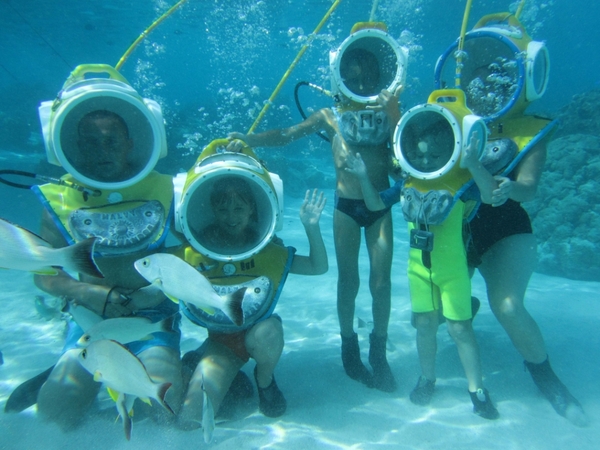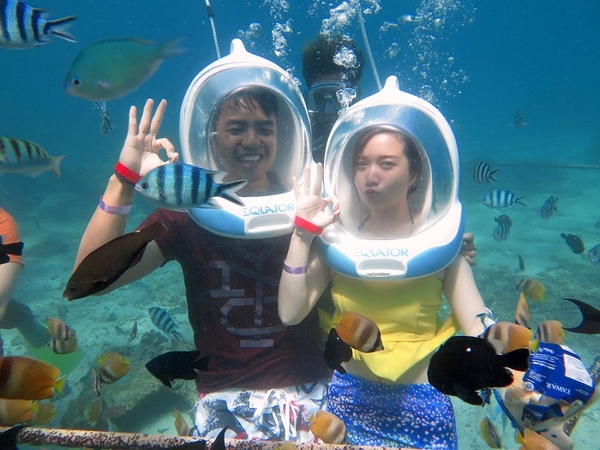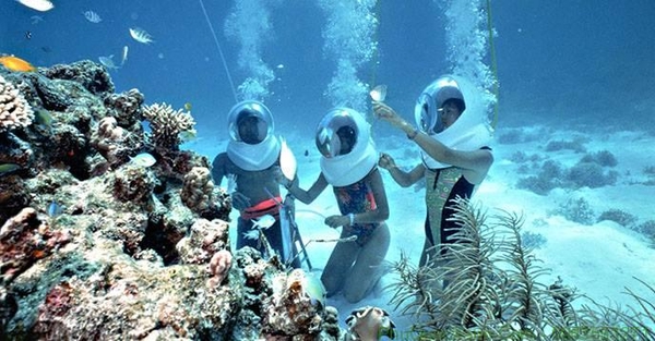 Muốn đi bộ dưới đáy biển bạn chỉ cần đội chiếc mũ có cung cấp khí oxy và theo hướng dẫn viên là có thể xuống biển để dạo ngắm cá, san hô dưới vùng đáy biển rộng khoảng 50m2, từ 15-20 phút/lần. Nhưng có thể đi tới tận 30 phút một lần.
